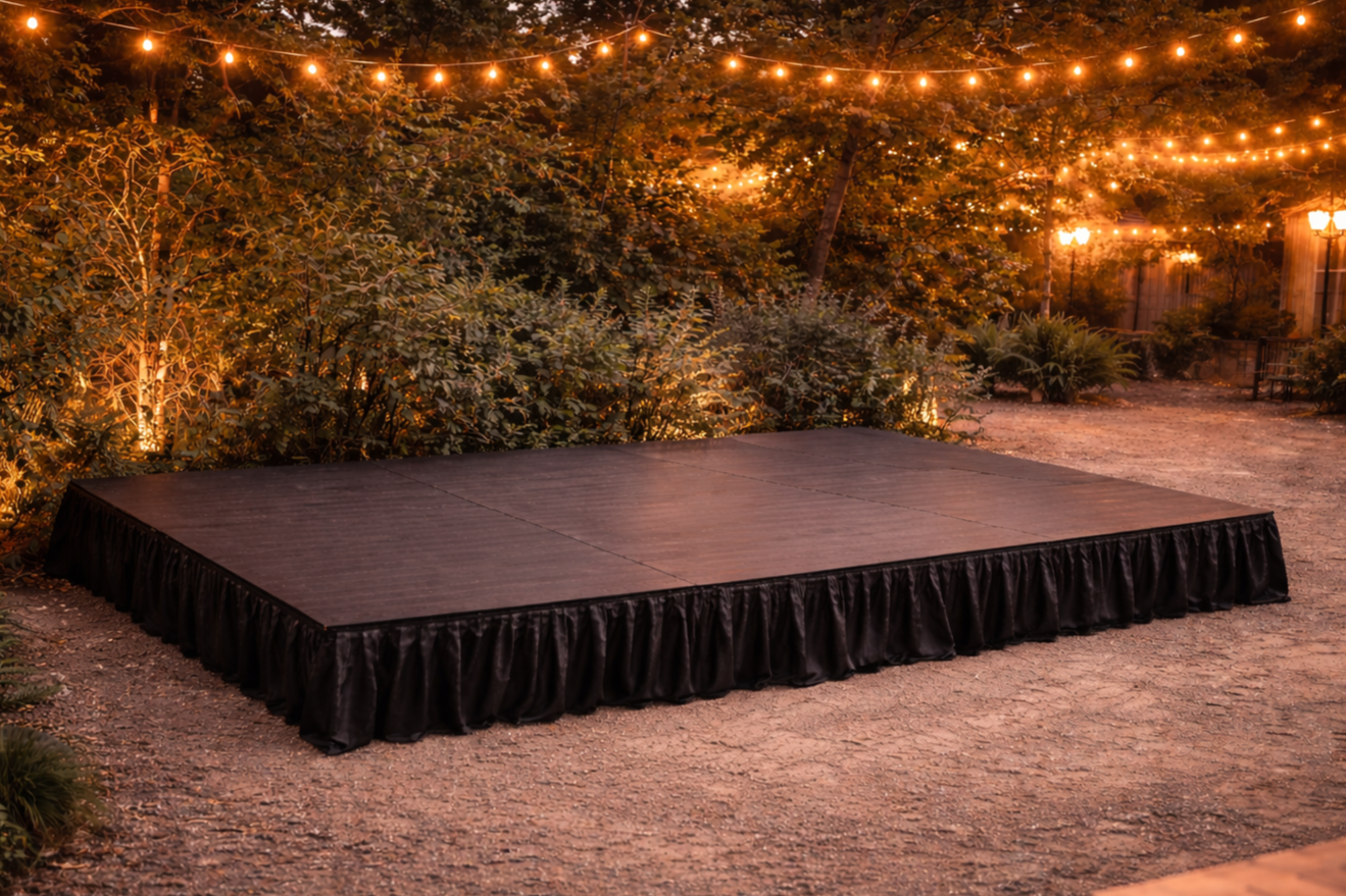 Our modular stage decks adapt to your event layout, venue size, and audience needs. Whether you’re hosting a live performance, DJ set, or speaking event, we provide clean, sturdy staging that looks intentional and professional.